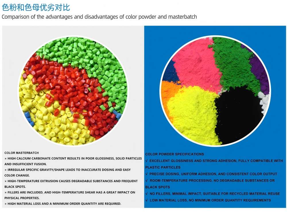 1. Модульная конструкция: обеспечивает быструю смену цвета за 5 минут; может быть заполнена дополнительными материалами; совместима как с пигментом, так и с маточной смесью, что позволяет многоцелевое использование в одной машине.